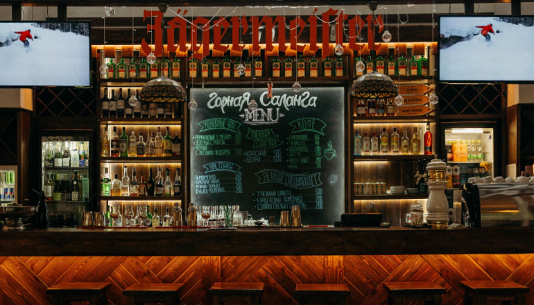Кроме того, есть безалкогольные согревающие напитки — свежесваренный кофе, большой выбор чая, в том числе со специями, с сибирскими и альпийскими травами.
