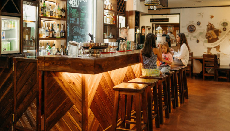 В баре ресторана традиционно большой выбор самых популярных алкогольных и безалкогольных напитков. Специально для ценителей — ароматный глинтвейн, приготовленный по фирменному рецепту.