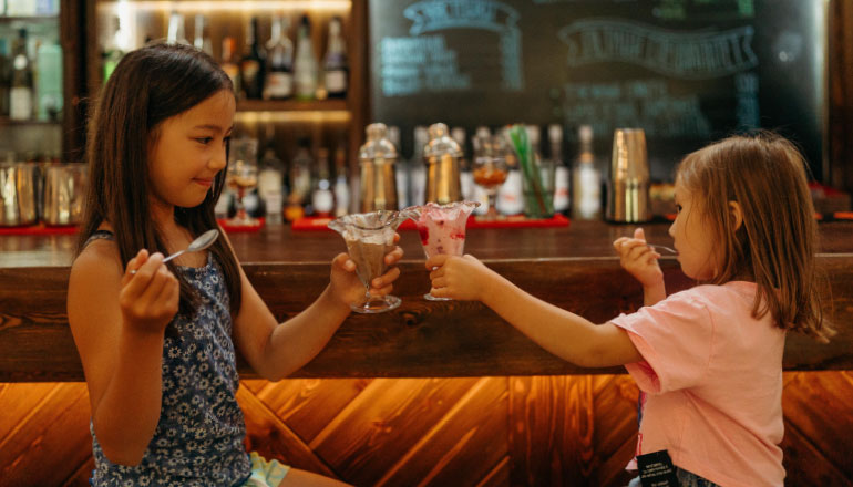 Для детей и взрослых-сладкоежек предлагаем различные десерты — горячий шоколад, мороженое со свежими ягодами, орехами, вкусные молочные коктейли. Одним словом есть всё, что вы пожелаете!