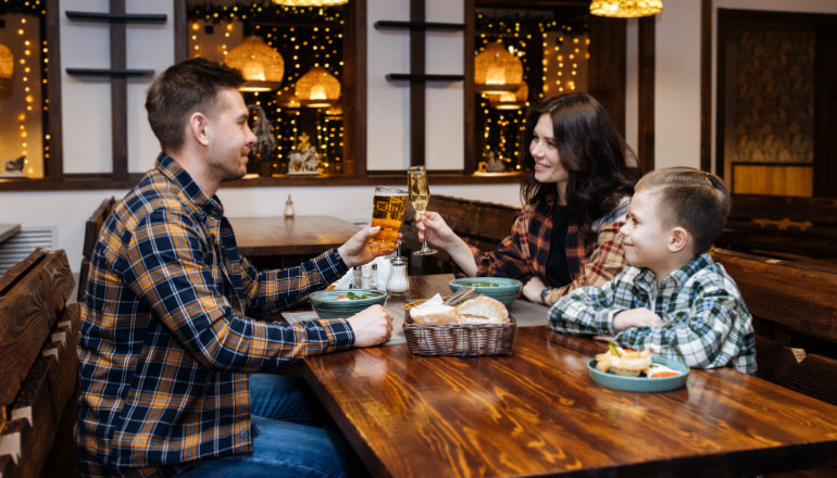 Обедают все желающие в ресторане «Брудершафт»: ежедневно с 12:00 до 16:00 работает линия раздачи – наши повара приготовят для Вас всегда свежие и по-домашнему вкусные салаты, супы и вторые блюда! Кроме того, всегда есть в продаже свежая выпечка, горячие и холодные напитки.